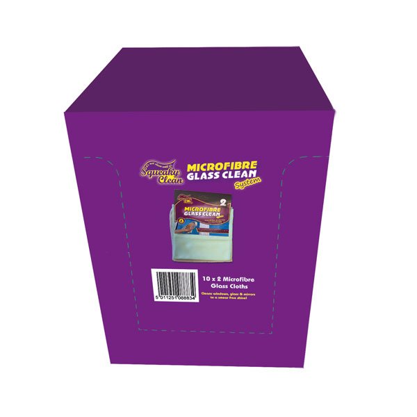 Glass cleaning system contains 2 step microfibre cleaning cloths. Suitable for windows, glass surfaces and mirrors to a smear free finish.